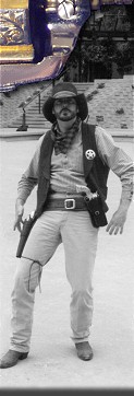 For over twenty years, Howard has been combining his Fast Draw and gun spinning skills to create an amazing trick & fancy shooting show. Blanks are used in these shows to shoot balloons held by assistants, which makes for a spectacular performance.